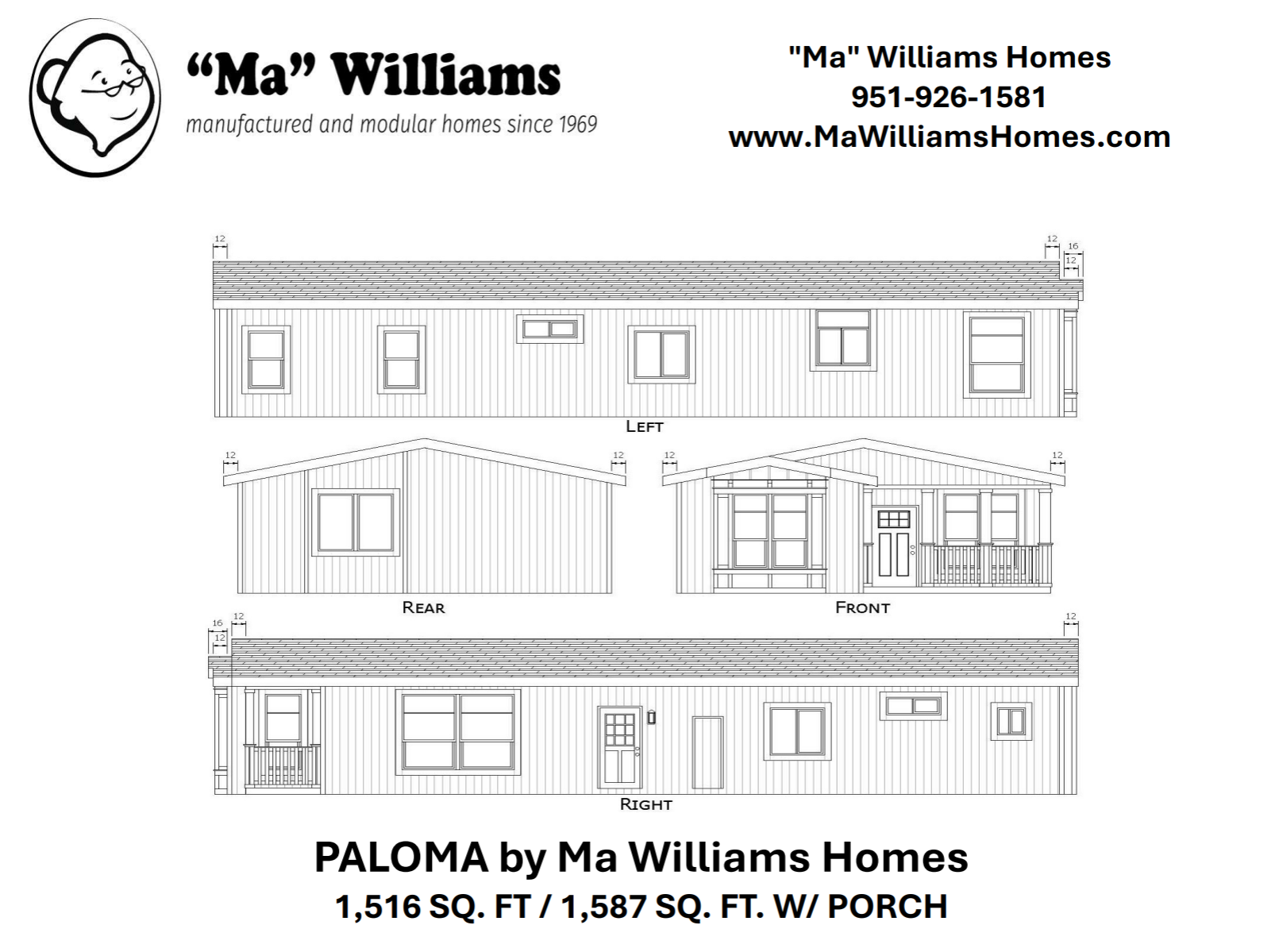 • 3:12 Roof Pitch (2:12 on Triple Wide Plans)